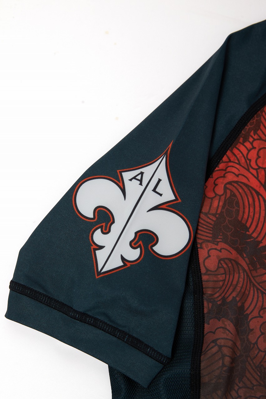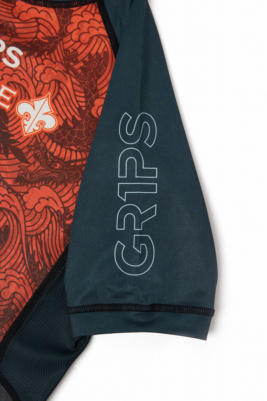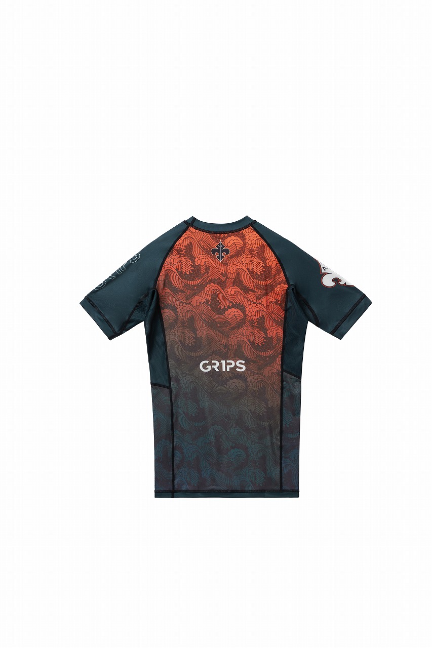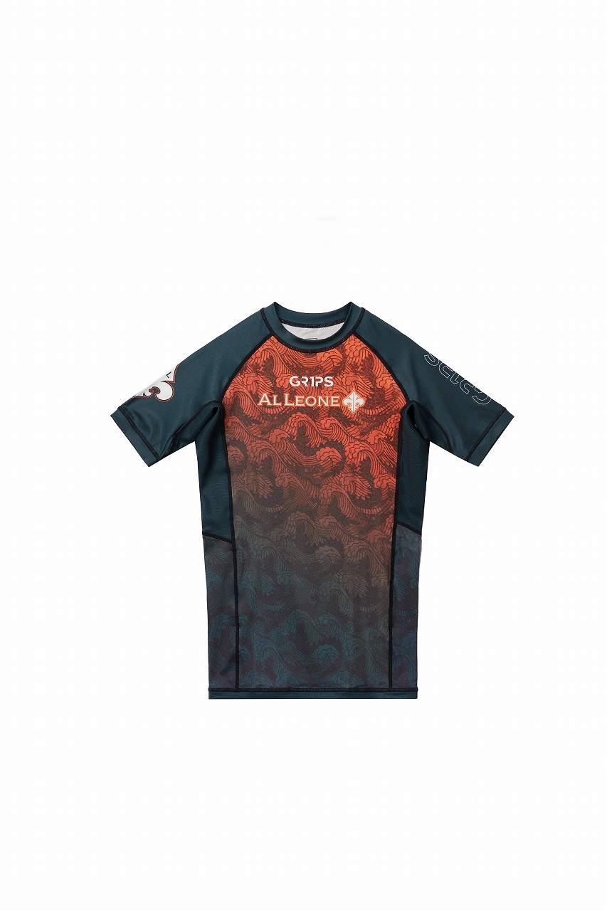Grips x AL Leone ラッシュガード FOREST DRAGON 半袖 ペトロルグリーン/オレンジ