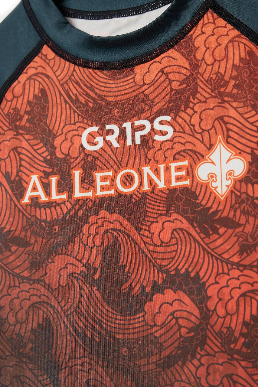 イタリア発祥の格闘技ブランド「Grips」と2020年に設立された格闘技ブランド「AL Leone」のコラボラッシュガードです。