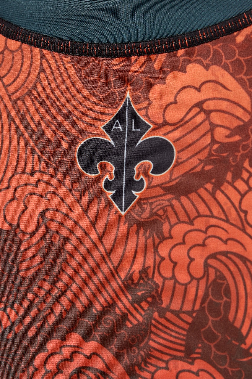 商品名:Grips x AL Leone ラッシュガード FOREST DRAGON 半袖 ペトロルグリーン/オレンジ